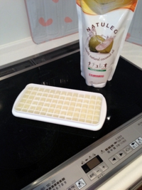 そのため、液状のナチュレオを製氷トレーに流し込みキューブ状に固めると使い易くなります。
