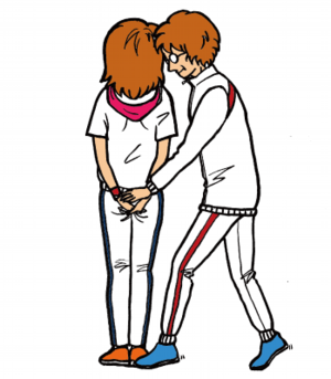 イラストの様に身体の後ろで手のひらを上にして手を組んだ人の手のひらを真上から押して下さい。その場合、簡単に後ろに倒れてしまうでしょう。
