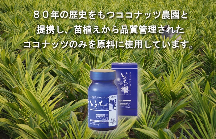 しかし、「いのちの雫」は抗酸化物質や酵素が多く含まれていると言われている3〜4ヶ月の若いココナッツの実を使用しています。